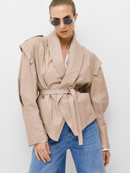 Leather Belted Jacket – Beige