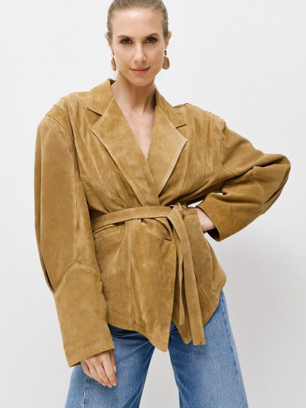 Suede Belted Jacket – Camel