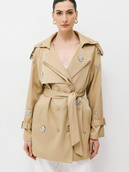 Jeweled Trench Coat – Beige