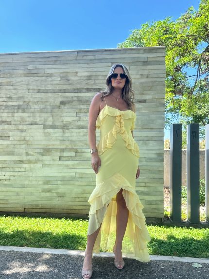 Lilith Ruffled Dress – Yellow/White