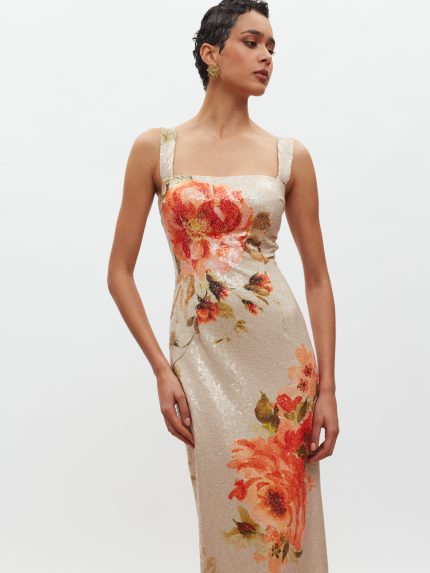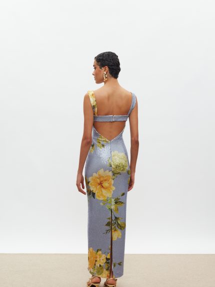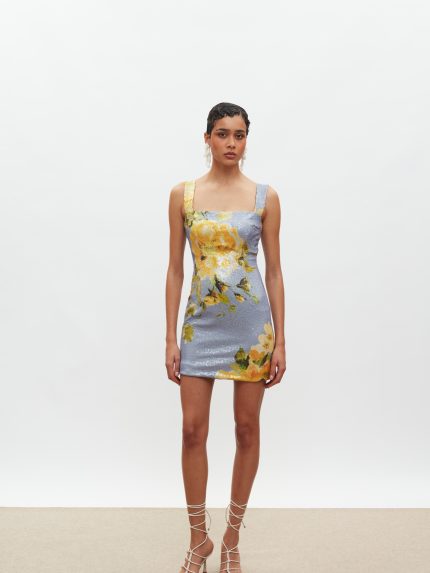 Kali Mini Sequin Dress – Indigo/Yellow Floral