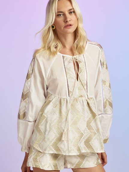 Crinkle Top with Ring – White / Black / Blue