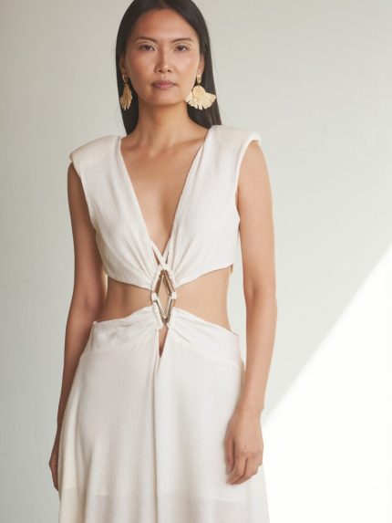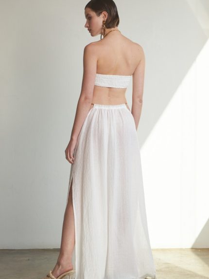 Crinkle Bare Waist Dress – White