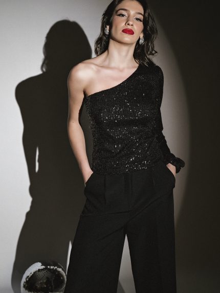 Sia Sequin Top – Black