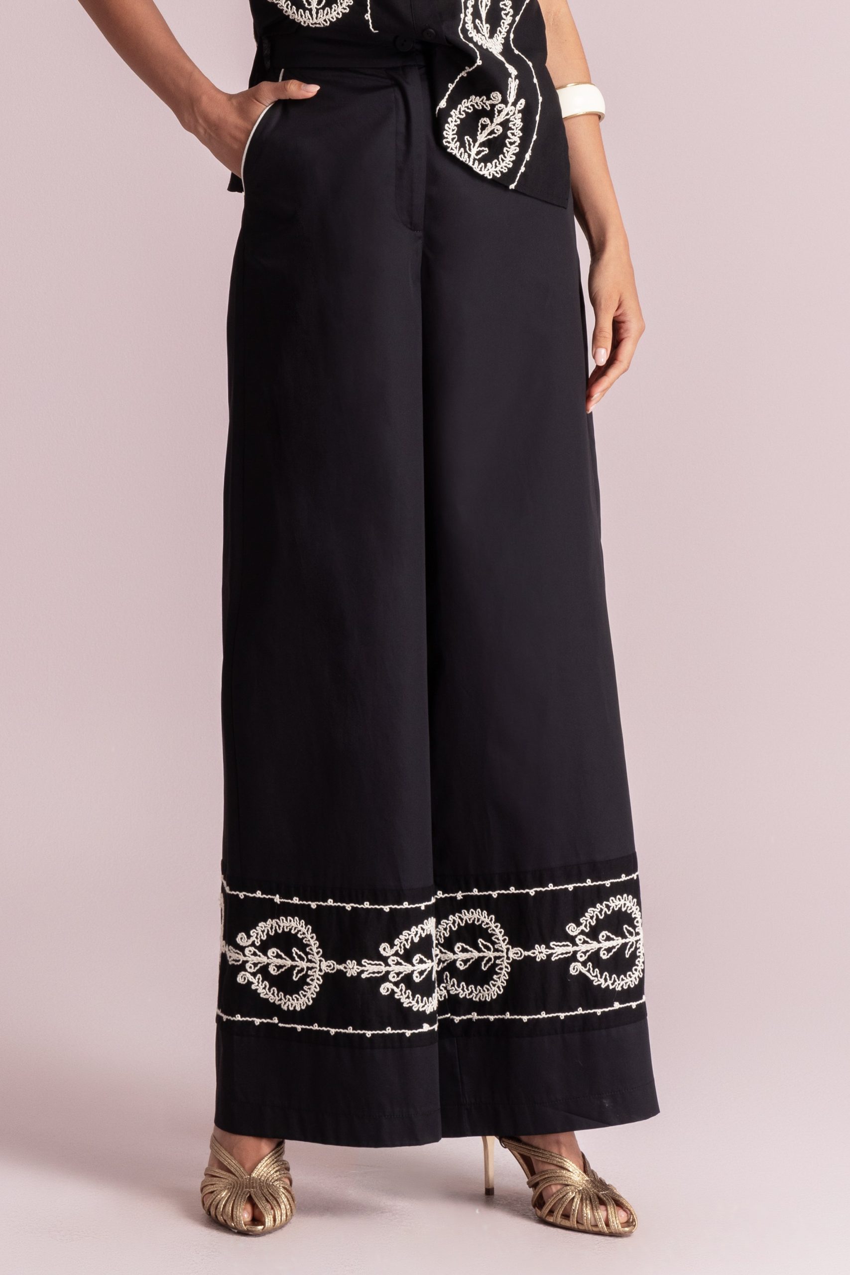Anna Embroidered Pants – Black