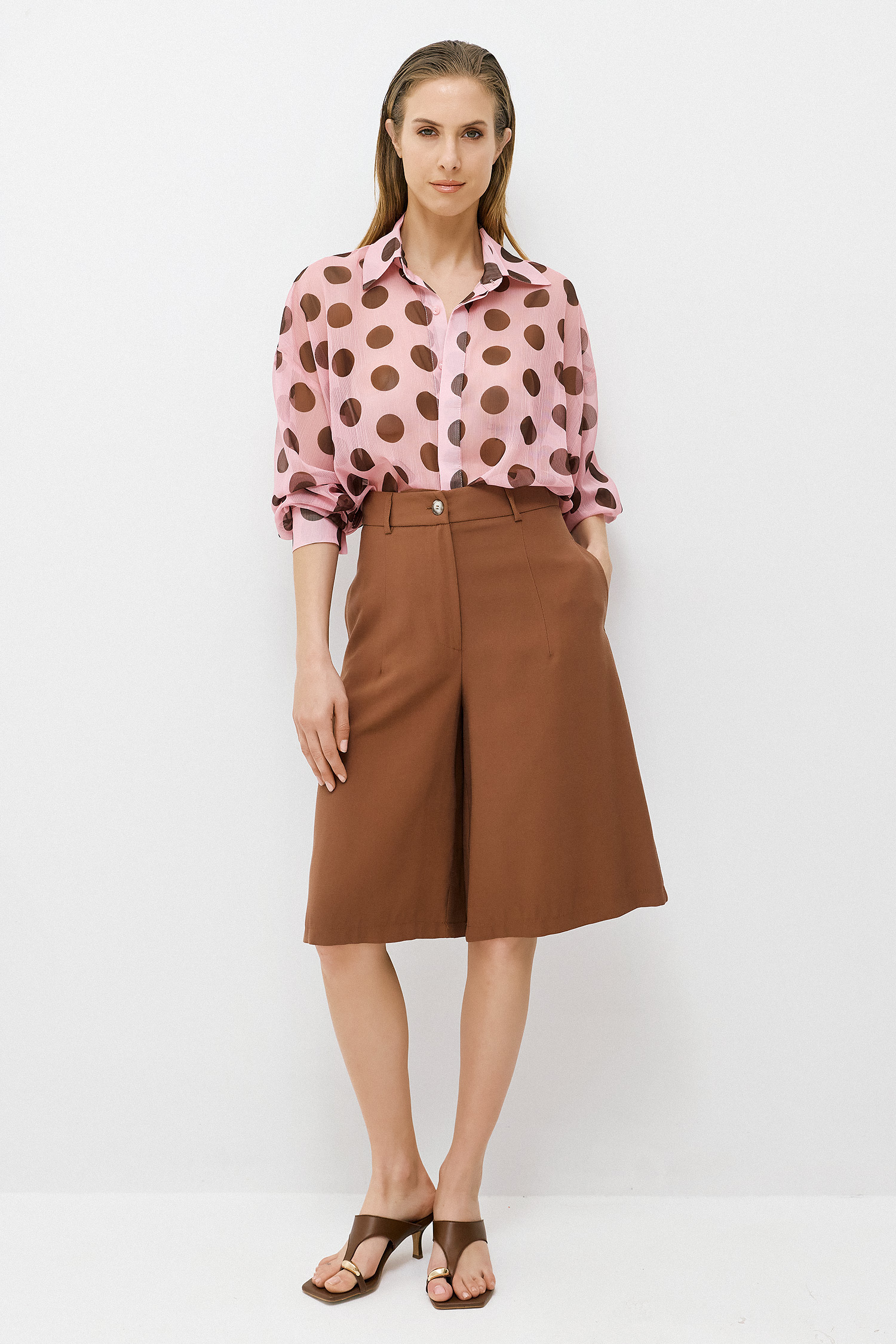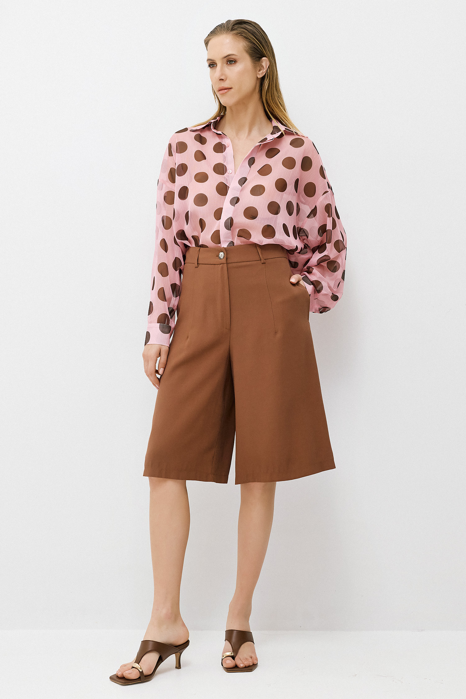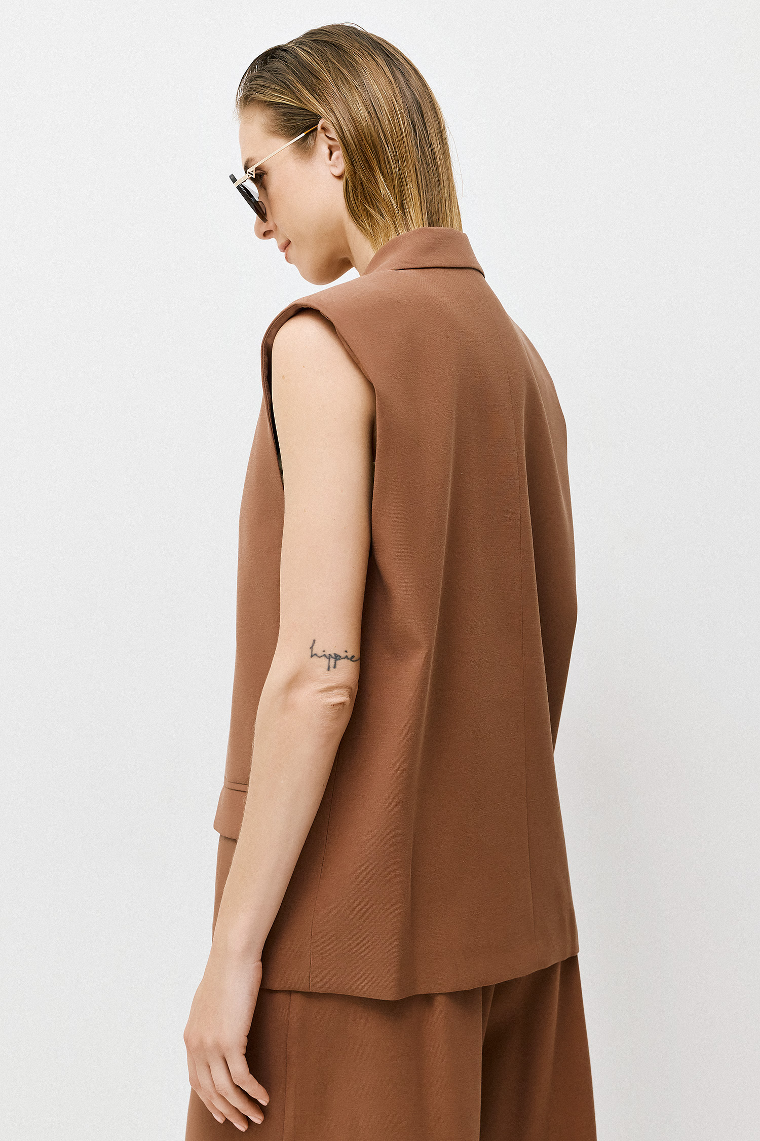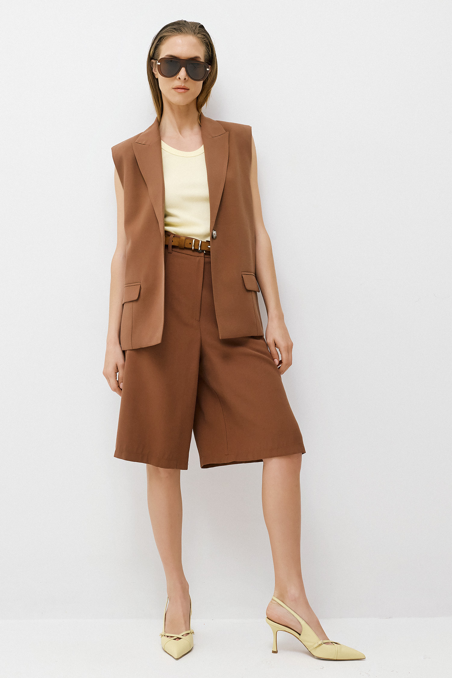 Σύγχρονο tailored set που αποπνέει effortless κομψότητα με έντονη fashion ταυτότητα. Το αμάνικο γιλέκο, με καθαρές γραμμές και structured ώμους, επαναπροσδιορίζει το κλασικό σακάκι σε μια πιο ανάλαφρη, καλοκαιρινή εκδοχή. Διαθέτει πέτο και διακριτικό κούμπωμα στο μπροστινό μέρος, δημιουργώντας μια sleek και δυναμική σιλουέτα που αγκαλιάζει το σώμα με κομψότητα. Η βερμούδα σε matching ύφασμα ισορροπεί ιδανικά τη δομή του γιλέκου με τη relaxed γραμμή της. Ψηλόμεση εφαρμογή με καθαρές ραφές και ελαφρώς loose γραμμή που φτάνει μέχρι το γόνατο, προσφέροντας άνεση και σύγχρονο χαρακτήρα. Το minimal design της την καθιστά απόλυτα versatile, ενώ η tailored αισθητική διατηρεί το sophisticated ύφος του συνόλου. Φοριέται ως ολοκληρωμένο co-ord set για ένα μοντέρνο, city chic αποτέλεσμα ή συνδυάζεται ξεχωριστά με basic tops και πουκάμισα, δημιουργώντας από day looks έως πιο elevated εμφανίσεις. Ένα σύνολο που ισορροπεί άψογα ανάμεσα στο δυναμισμό και τη θηλυκότητα, ιδανικό για σύγχρονες, κομψές εμφανίσεις.
