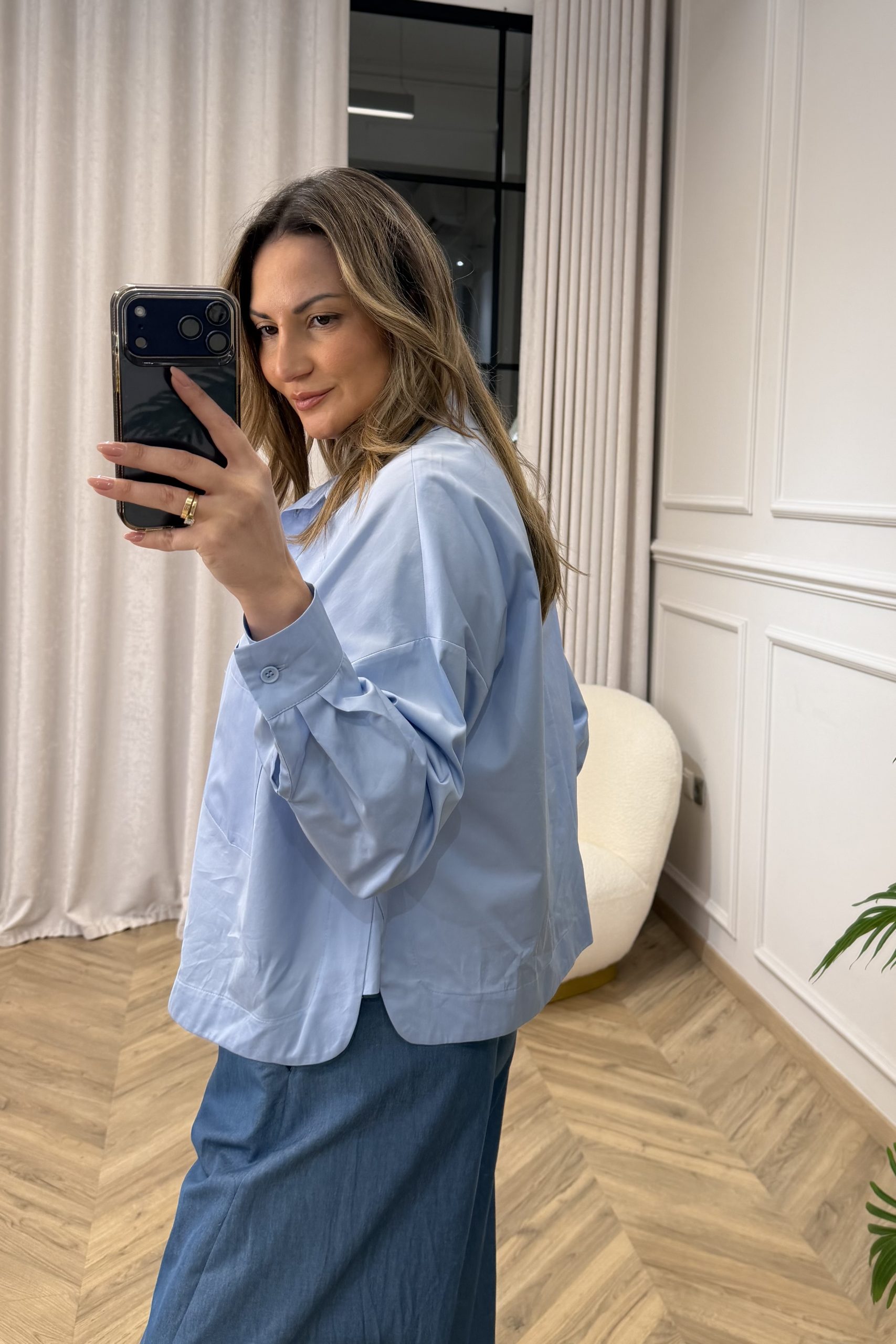 Γυναικείο πουκάμισο σε χαλαρή, άνετη γραμμή που συνδυάζει κομψότητα και σύγχρονο minimal ύφος. Διαθέτει γιακά, κουμπιά σε όλο το μήκος και δύο μεγάλες τσέπες στο μπροστινό μέρος που προσθέτουν στιλ και πρακτικότητα. Τα μακριά μανίκια με μανσέτες και η ελαφρώς oversized εφαρμογή το καθιστούν ιδανικό για all day εμφανίσεις. Το απαλό γαλάζιο χρώμα του δίνει φρεσκάδα και φωτεινότητα στο look, ενώ το ελαφρύ, δροσερό ύφασμα προσφέρει άνεση καθ’ όλη τη διάρκεια της ημέρας. Φοριέται εύκολα με υφασμάτινα παντελόνια για chic office outfits ή με jeans για πιο casual εμφανίσεις. Ένα διαχρονικό κομμάτι που δεν πρέπει να λείπει από καμία γυναικεία γκαρνταρόμπα.