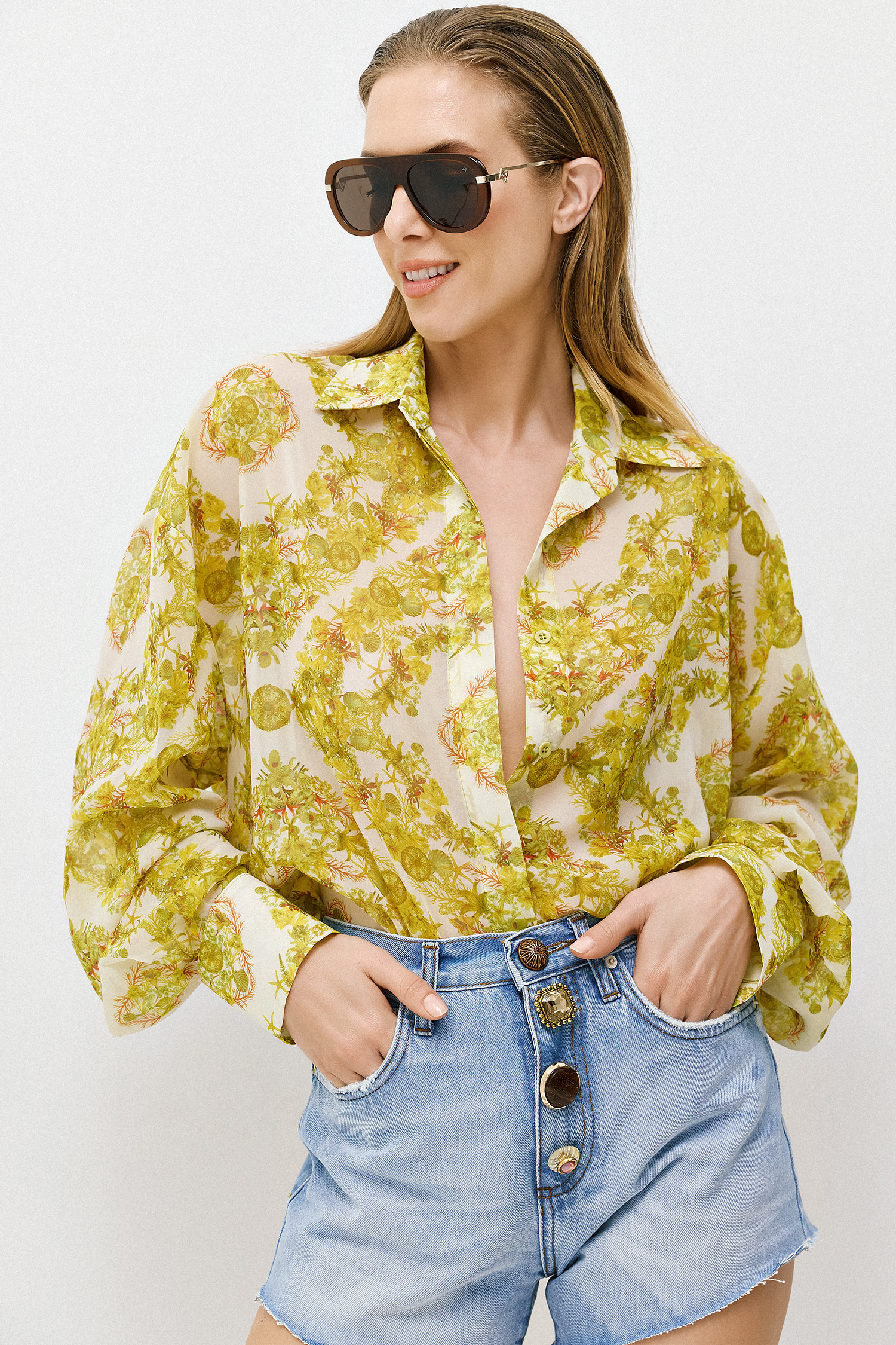 Ένα αέρινο πουκάμισο με ξεχωριστή λεπτομέρεια το αποσπώμενο γραβατάκι, το οποίο μπορεί να φορεθεί με πολλούς τρόπους – δεμένο στη μέση σαν ζώνη, στον λαιμό σαν statement αξεσουάρ ή ακόμα και χαλαρά για πιο relaxed αποτέλεσμα. Η ευελιξία του σχεδιασμού του επιτρέπει διαφορετικά styling moods, κάνοντάς το ένα κομμάτι-κλειδί για δημιουργικούς συνδυασμούς.