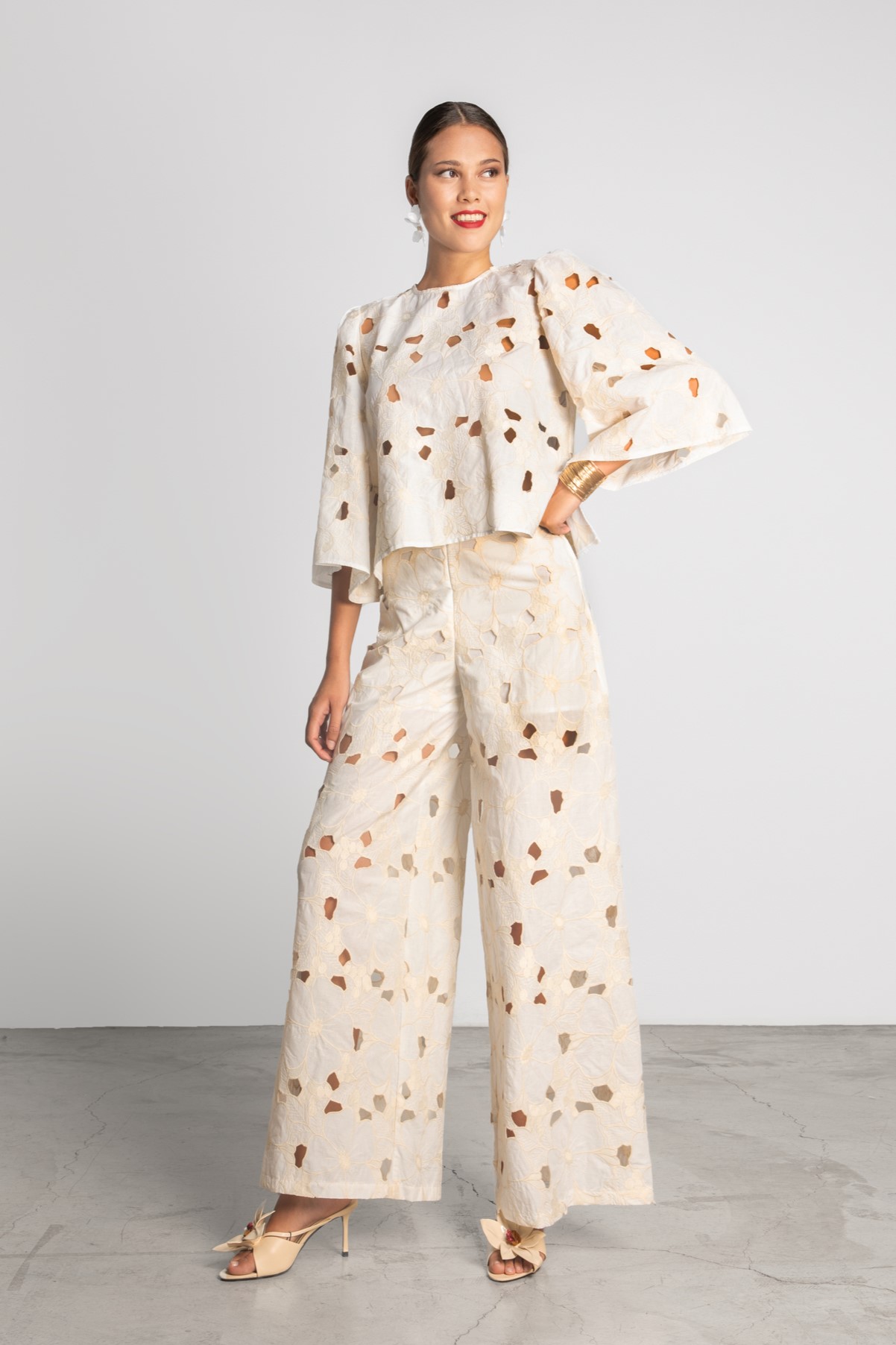 Emily Embroidered Pants – Ecru