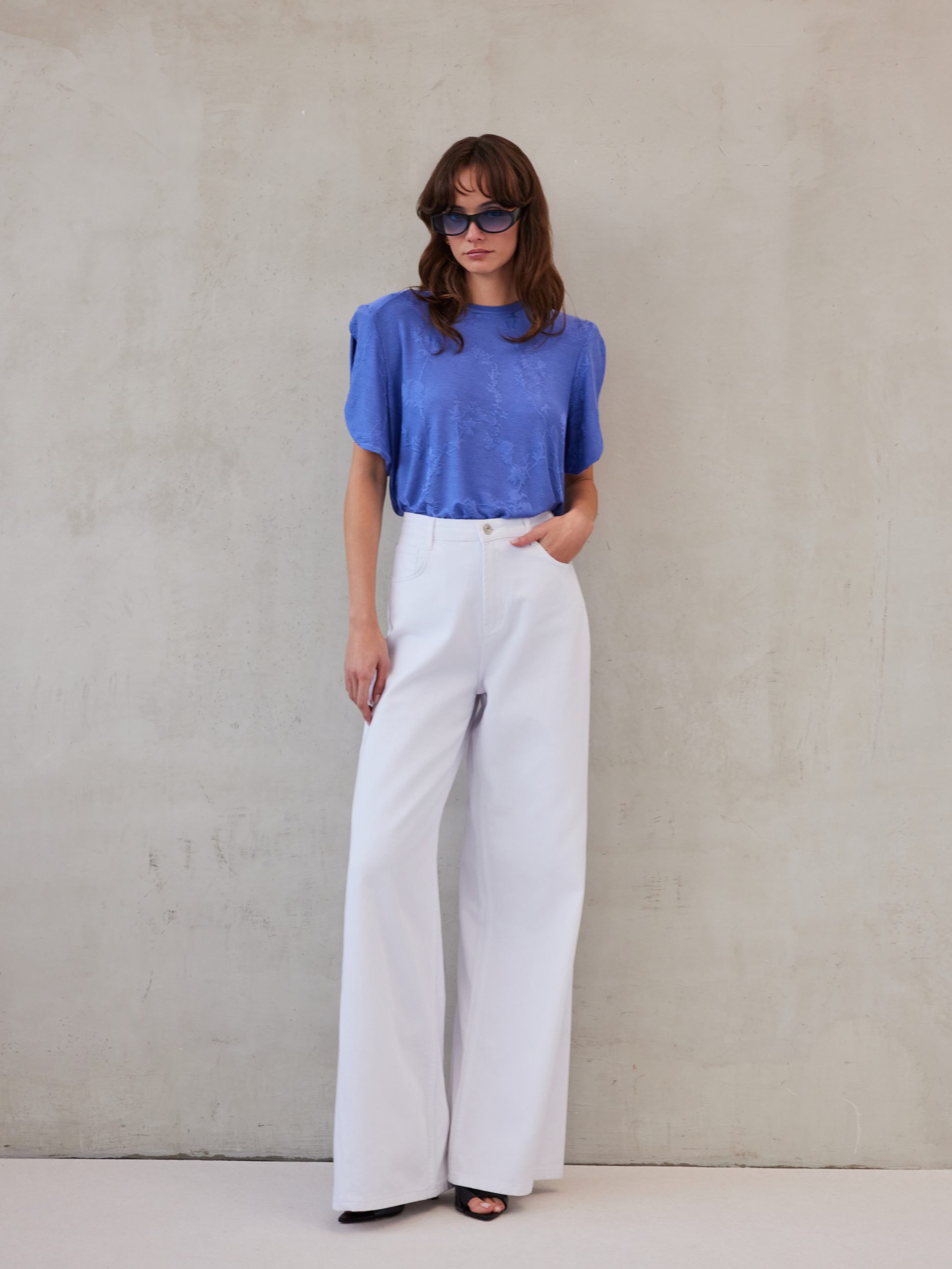 Ένα top που επαναπροσδιορίζει τη μινιμαλιστική κομψότητα μέσα από τη δομή και τη λεπτομέρεια. Η γραμμή του είναι καθαρή, με διακριτικά τονισμένους ώμους που προσδίδουν αρχιτεκτονικό χαρακτήρα και δυναμική σιλουέτα. Το ύφασμα αποκαλύπτει μια ανεπαίσθητη υφή, δημιουργώντας βάθος χωρίς υπερβολές. Το στοιχείο που το κάνει να ξεχωρίζει είναι το μανίκι: σχεδιασμένο με ιδιαίτερη κατασκευή που ανοίγει ελαφρώς, αφήνοντας μια αίσθηση κίνησης και ρευστότητας. Αυτή η λεπτομέρεια μετατρέπει ένα φαινομενικά απλό κομμάτι σε statement επιλογή, ισορροπώντας ανάμεσα στο σύγχρονο tailoring και την θηλυκή εκφραστικότητα. Φοριέται εύκολα από το πρωί έως το βράδυ, λειτουργώντας είτε ως βάση για ένα κομψό σύνολο είτε ως κεντρικό κομμάτι σε πιο fashion-forward εμφανίσεις.