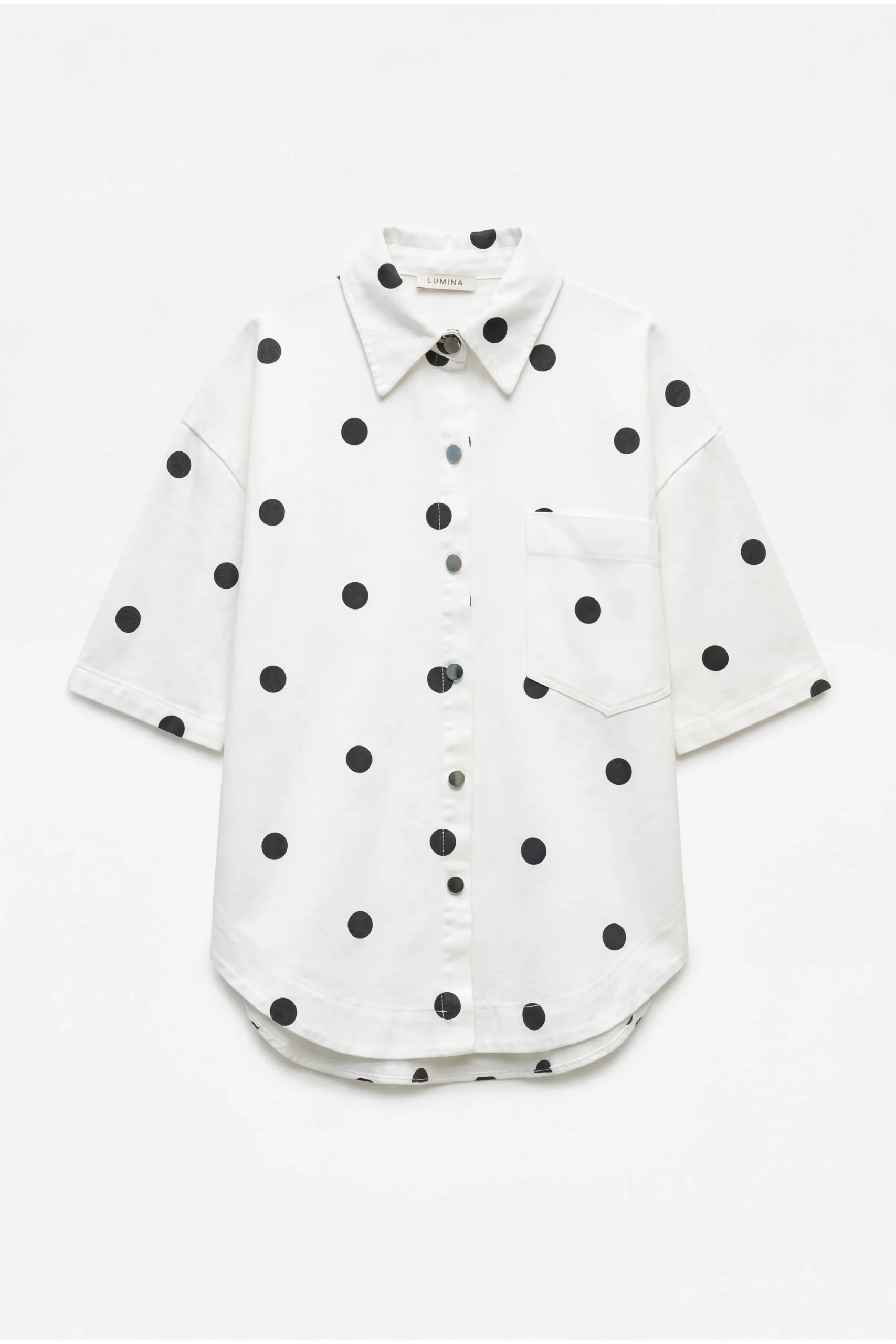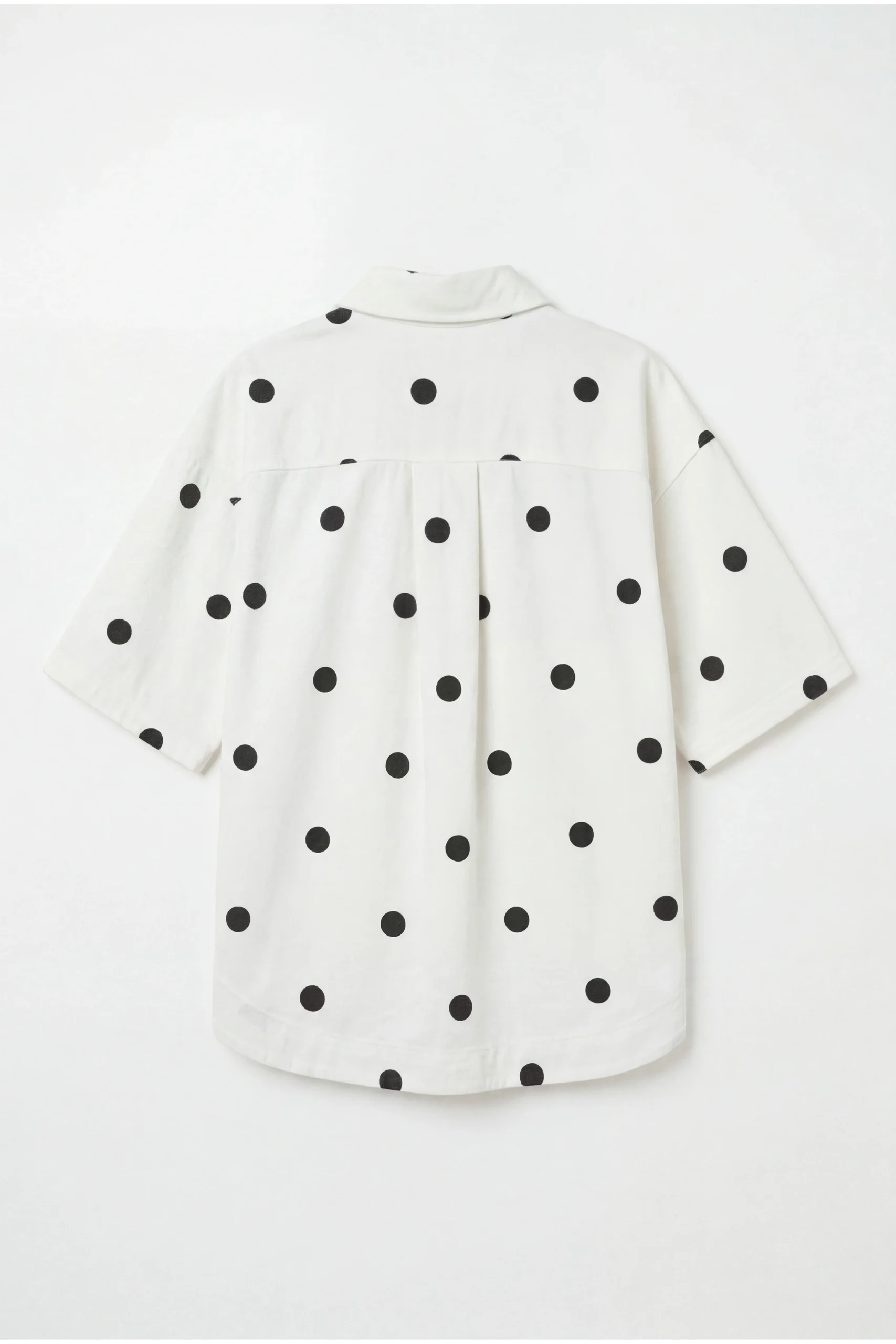 Ένα playful πουκάμισο που ισορροπεί ιδανικά ανάμεσα στο relaxed tailoring και τη διαχρονική κομψότητα. Η χαλαρή γραμμή του και το κλασικό γιακάς συνδυάζονται με το διακριτικό μοτίβο polka dot, δημιουργώντας ένα κομμάτι με ανεπιτήδευτο χαρακτήρα και σύγχρονη αισθητική. Η ελαφριά υφή του το καθιστά ιδανικό για layering ή για να φορεθεί μόνο του, προσφέροντας effortless στυλ από το πρωί μέχρι το βράδυ. Συνδύασέ το με denim για casual looks ή με tailored παντελόνια για πιο refined εμφανίσεις. Φοριέται και ανοιχτό πάνω από basic tops για πιο relaxed layering.