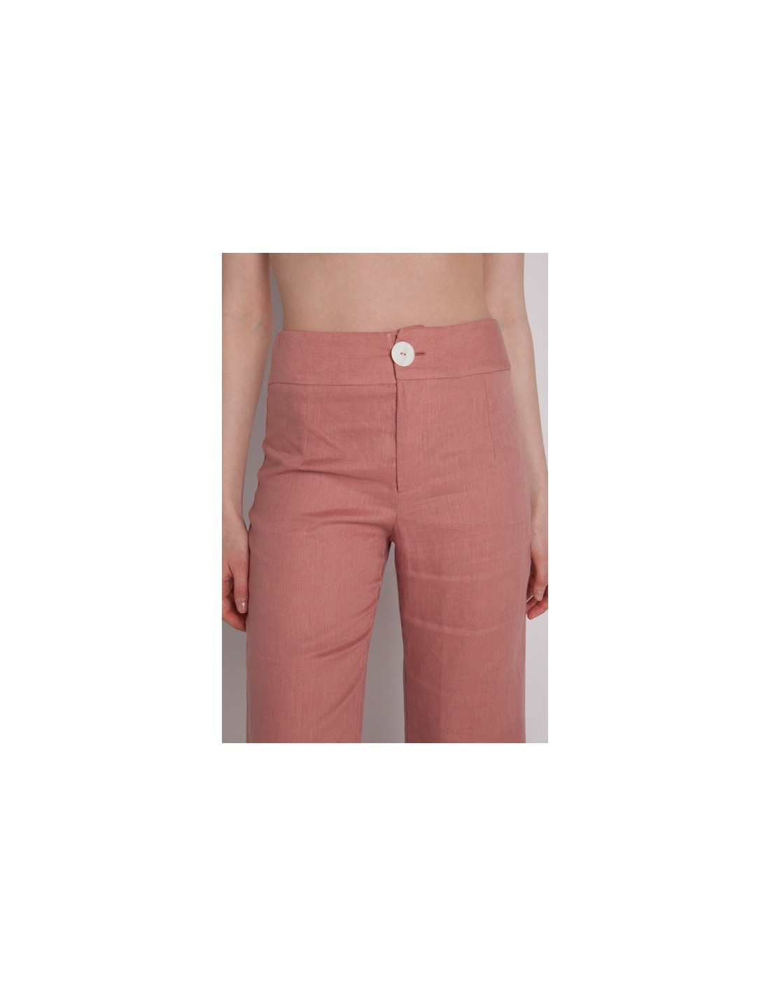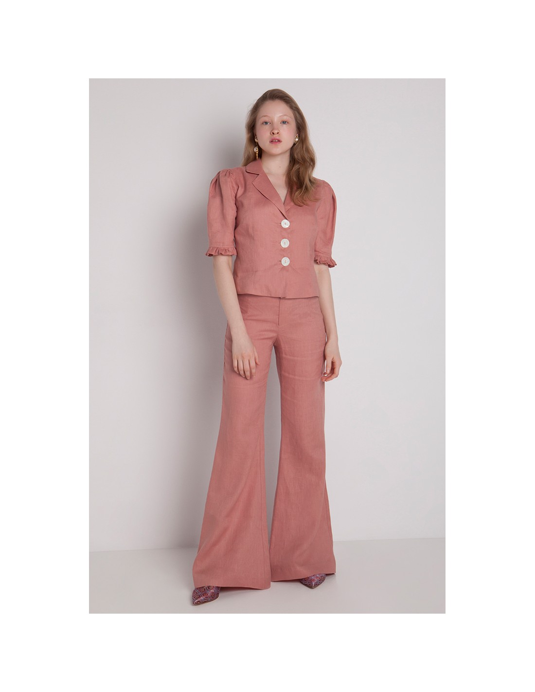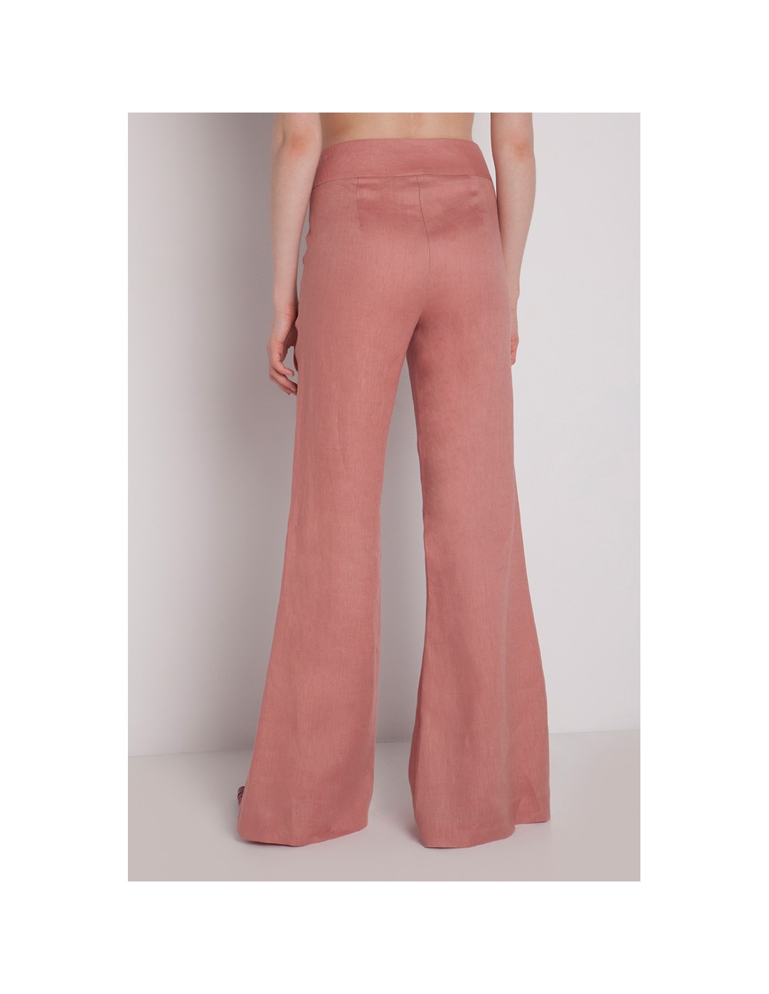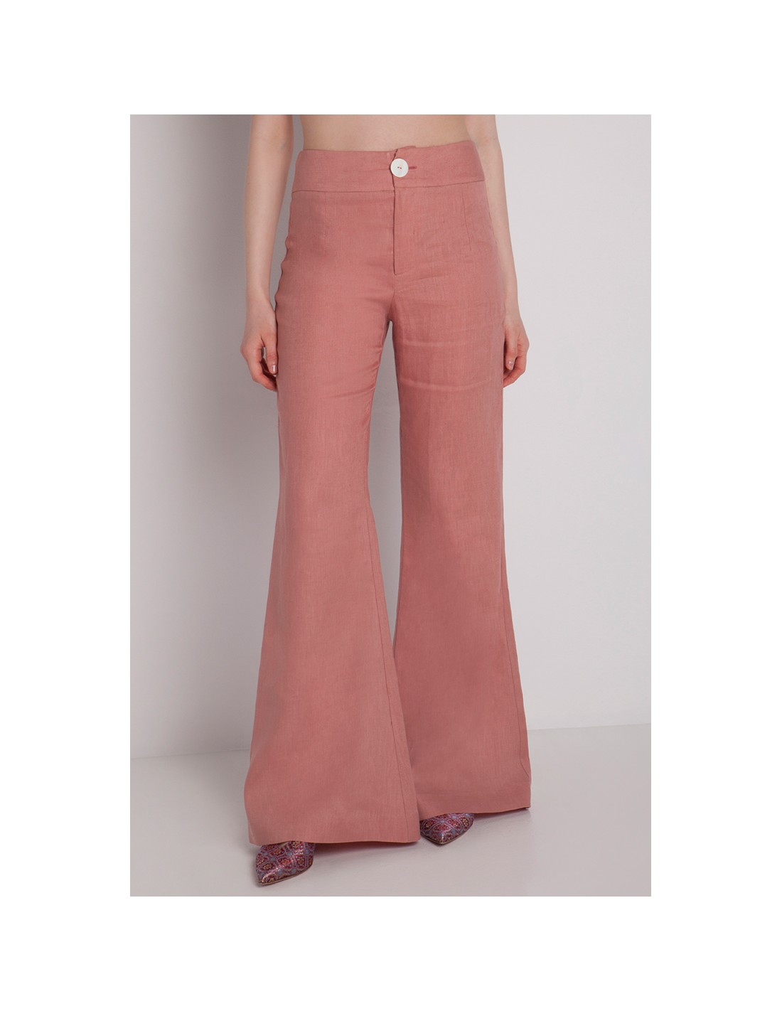Stefania Vaidani ψηλόμεσο παντελόνι. Λινό καμπάνα παντελόνι με υπέροχη εφαρμογή. Διαθέτει φερμουάρ και ένα κουμπί στο μπροστινό μέρος. Συνδυάστε το με French Rose Linen Jacket για ένα εντυπωσιακό look.