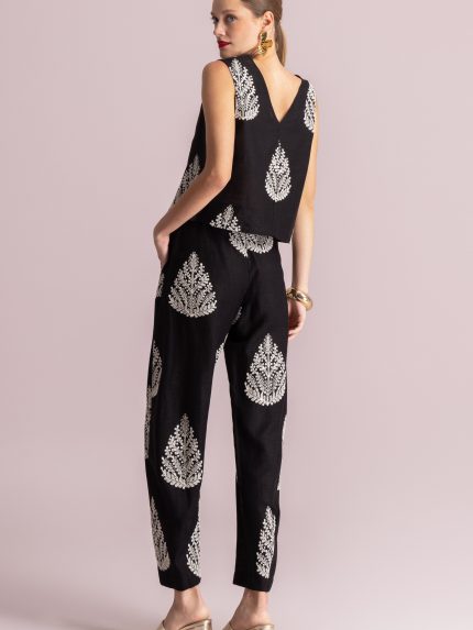 Ένα κομψό τοπ που ξεχωρίζει για τον σύγχρονο χαρακτήρα και το εκλεπτυσμένο μοτίβο του. Η καθαρή γραμμή του αγκαλιάζει διακριτικά τη σιλουέτα, δημιουργώντας ένα αποτέλεσμα που ισορροπεί ανάμεσα στην άνεση και την κομψότητα. Ο minimal σχεδιασμός του επιτρέπει εύκολους συνδυασμούς, ενώ το ιδιαίτερο μοτίβο του προσθέτει βάθος και προσωπικότητα στο σύνολο. Φοριέται ιδανικά μόνο του ή σε συνδυασμό με το αντίστοιχο παντελόνι για ένα ολοκληρωμένο και σύγχρονο σετ.