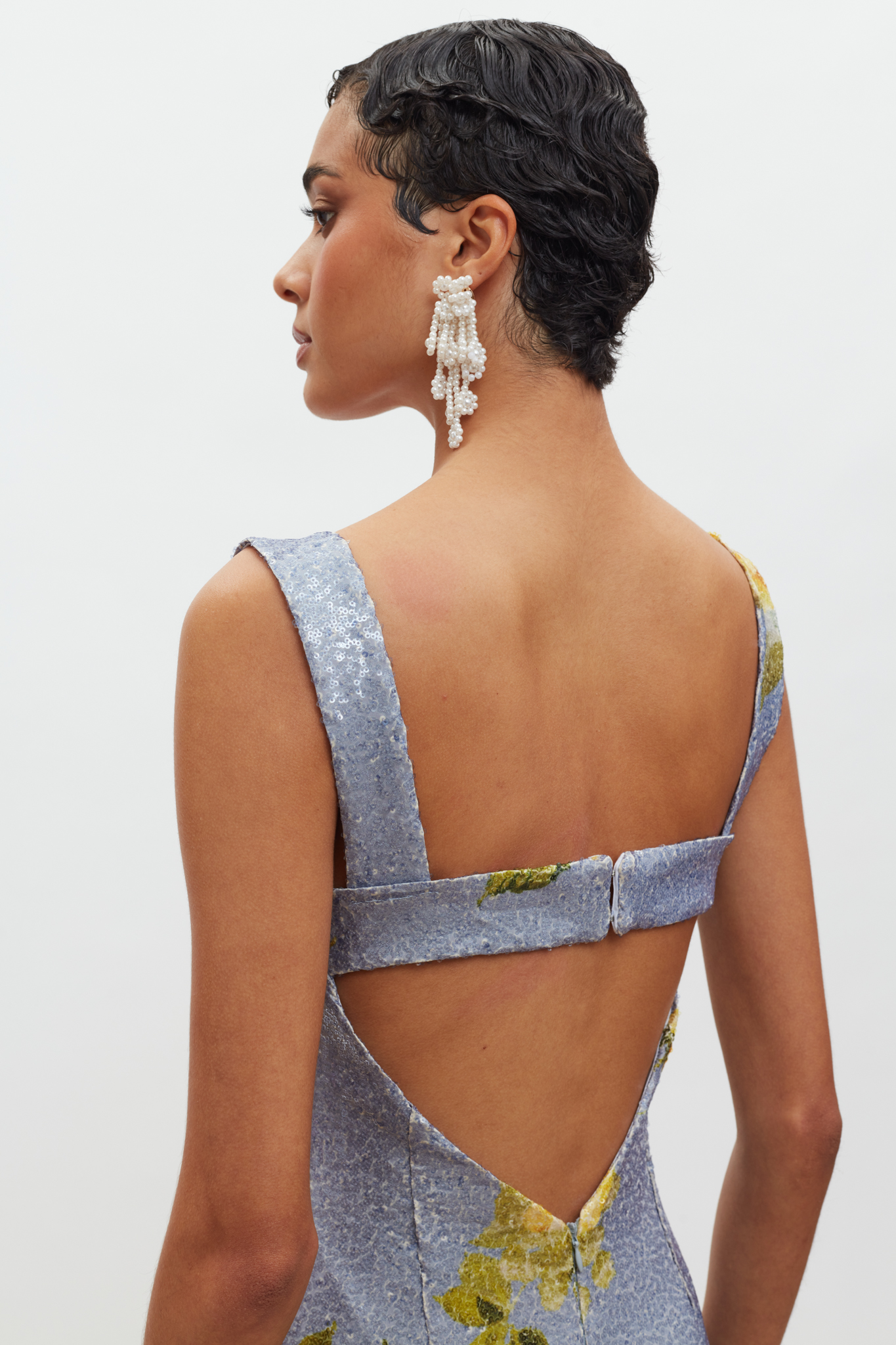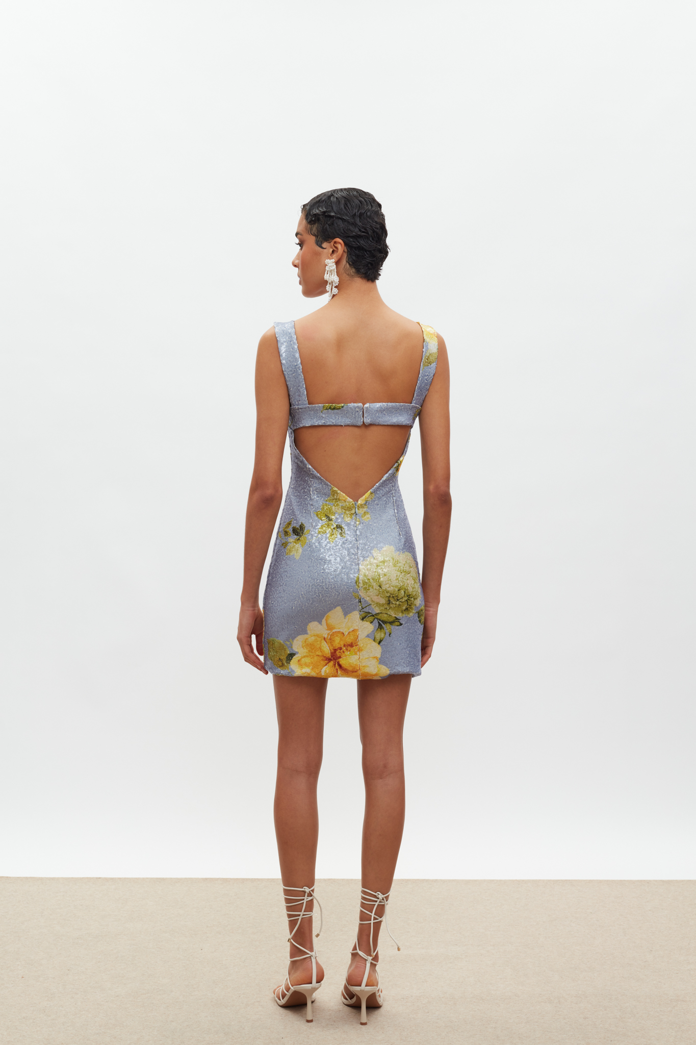 Kali Mini Sequin Dress – Indigo/Yellow Floral