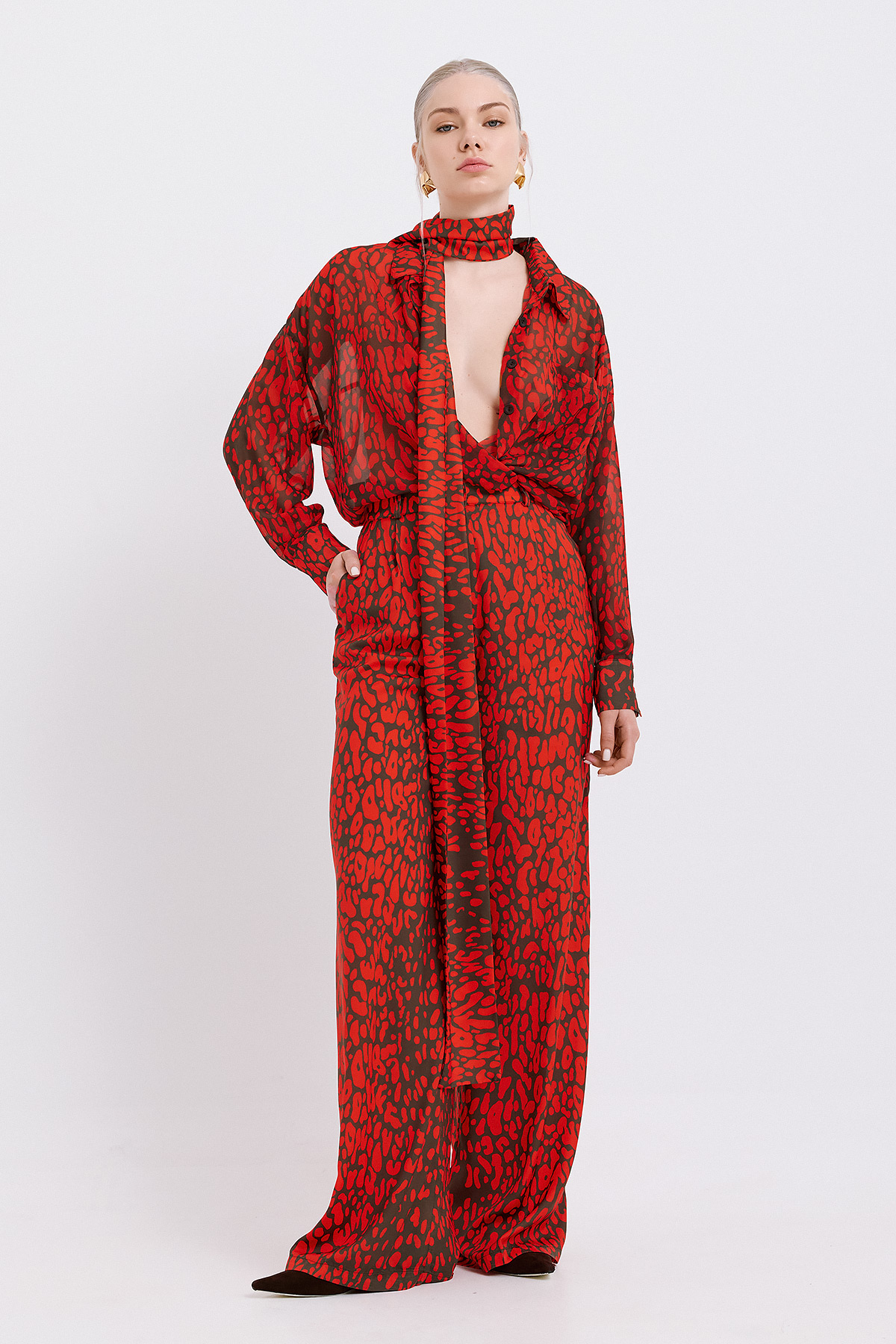 Γυναικείο πουκάμισο με κόκκινο animal print που αποπνέει δυναμισμό και κομψότητα. Σε χαλαρή, άνετη γραμμή, αγκαλιάζει το σώμα προσφέροντας effortless στυλ από το πρωί έως το βράδυ. Διαθέτει γιακά, κουμπιά σε όλο το μήκος και τσέπη στο στήθος με διακριτική ρέλι λεπτομέρεια που προσθέτει μία ιδιαίτερη πινελιά. Το ανάλαφρο ύφασμά του χαρίζει άνεση και κομψή κίνηση, ενώ το διαχρονικό leopard μοτίβο το καθιστά ιδανική επιλογή για εντυπωσιακά looks. Φόρεσέ το με το αντίστοιχο παντελόνι για ένα ολοκληρωμένο σετ ή συνδύασέ το με μονόχρωμα κομμάτια για πιο ισορροπημένες εμφανίσεις.