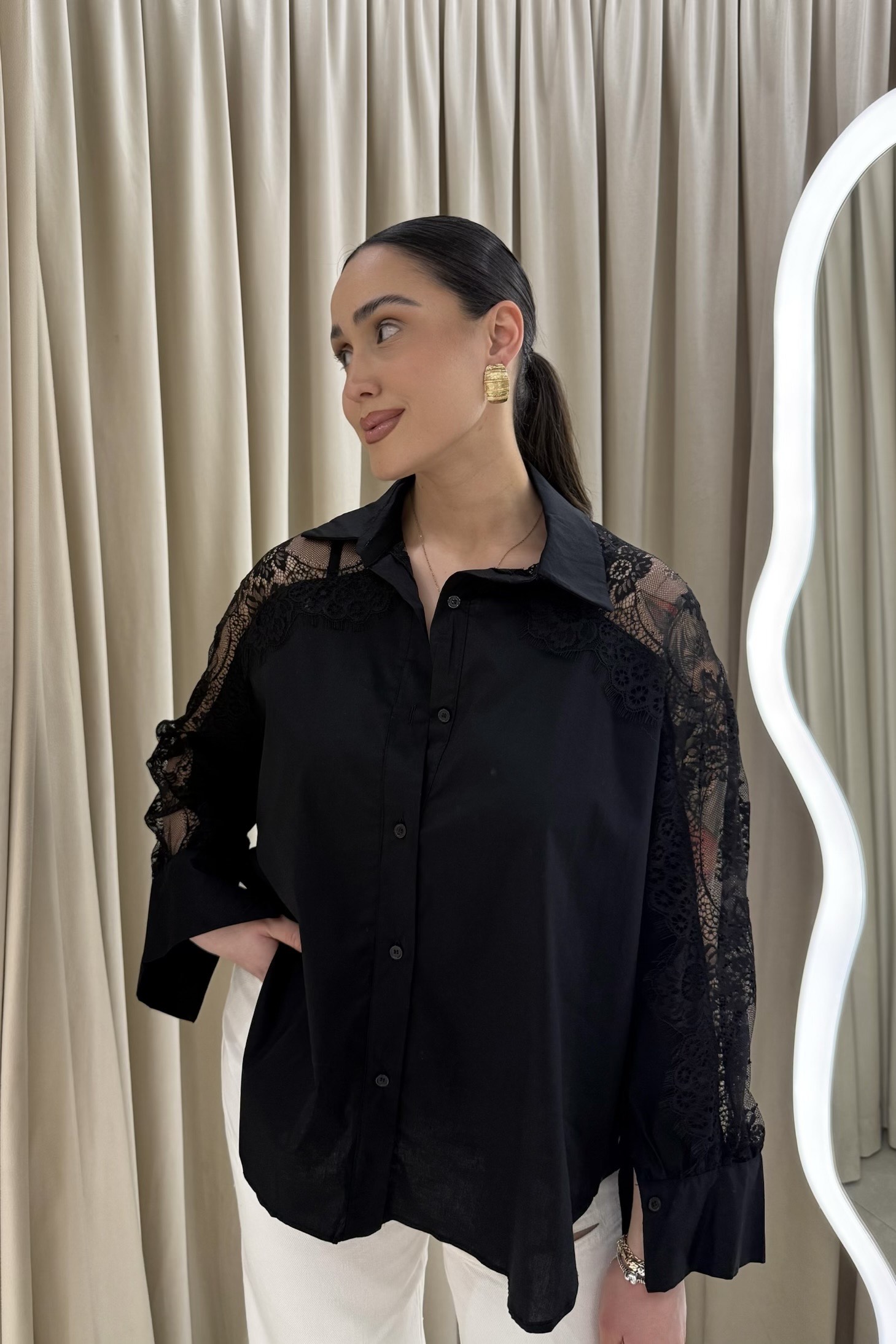 Maxine Lace Shirt – Black