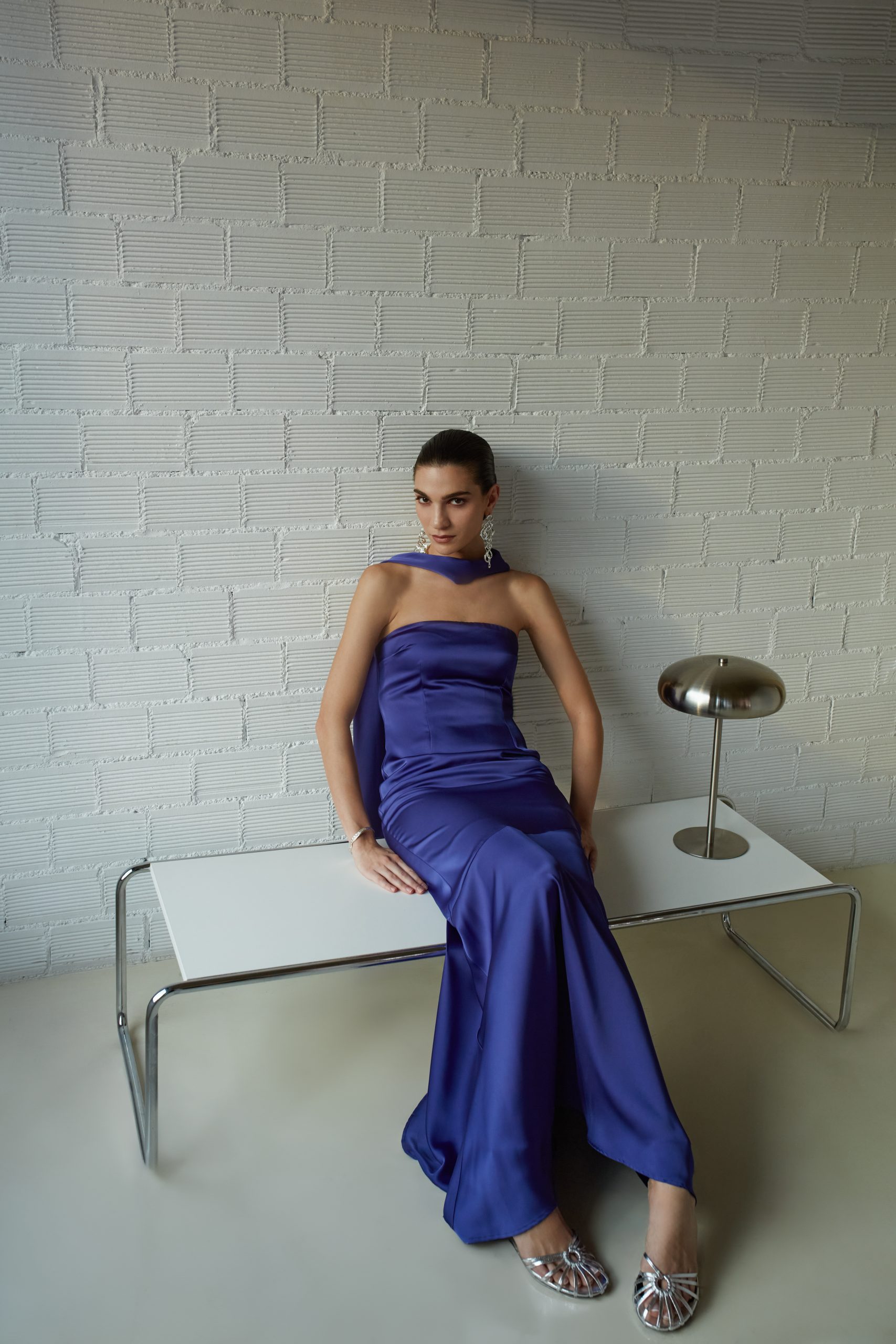 Το Nepheli Dress είναι ένα μάξι φόρεμα με διακριτικό γυαλιστερό φινίρισμα και ελαφριά σατινέ υφή. Διαθέτει ενσωματωμένο λαιμό με εντυπωσιακό δέσιμο στον λαιμό και ασύμμετρο τελείωμα στη φούστα που προσθέτει κίνηση. Ένα κομψό και διαχρονικό κομμάτι με μίνιμαλ χαρακτήρα.
