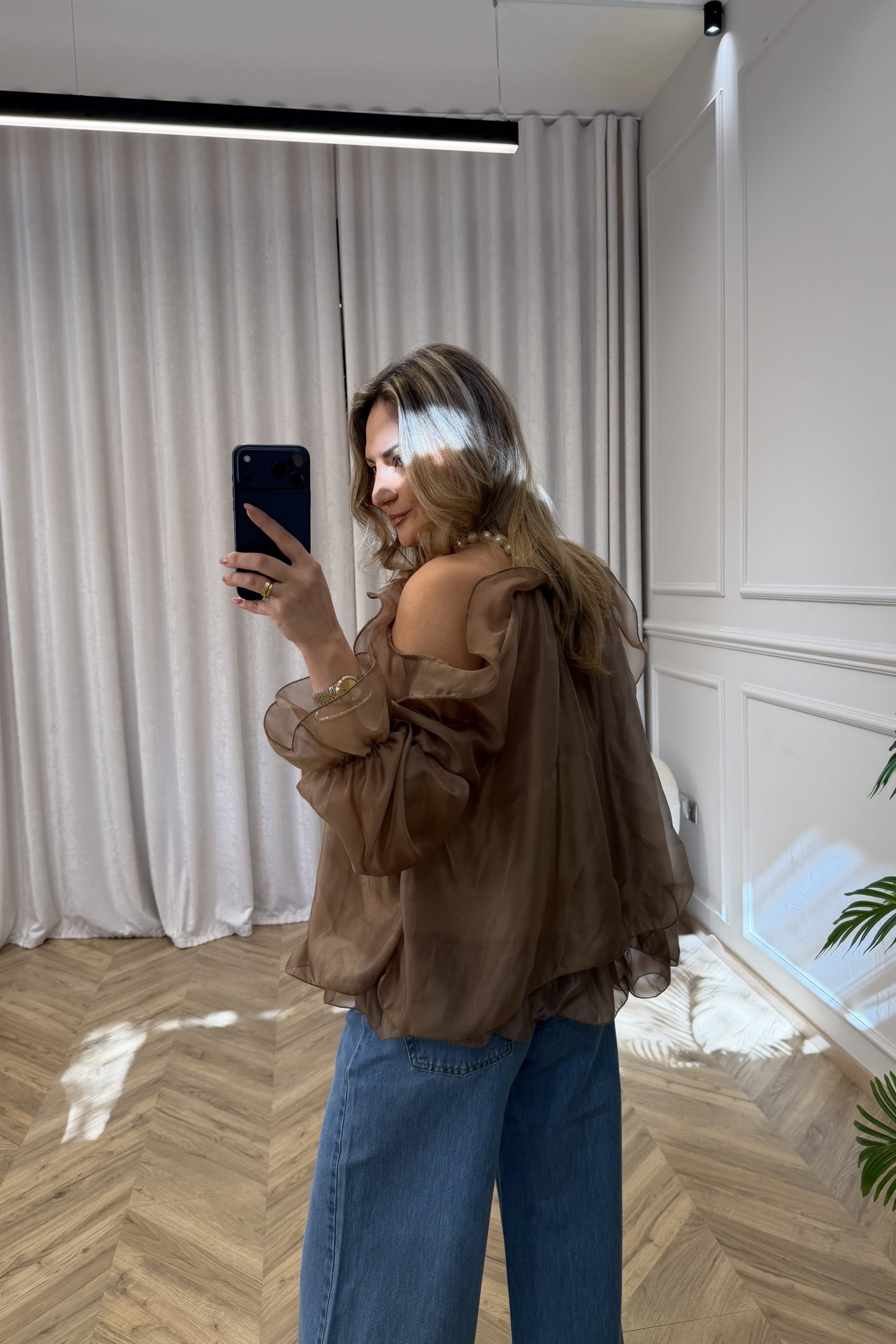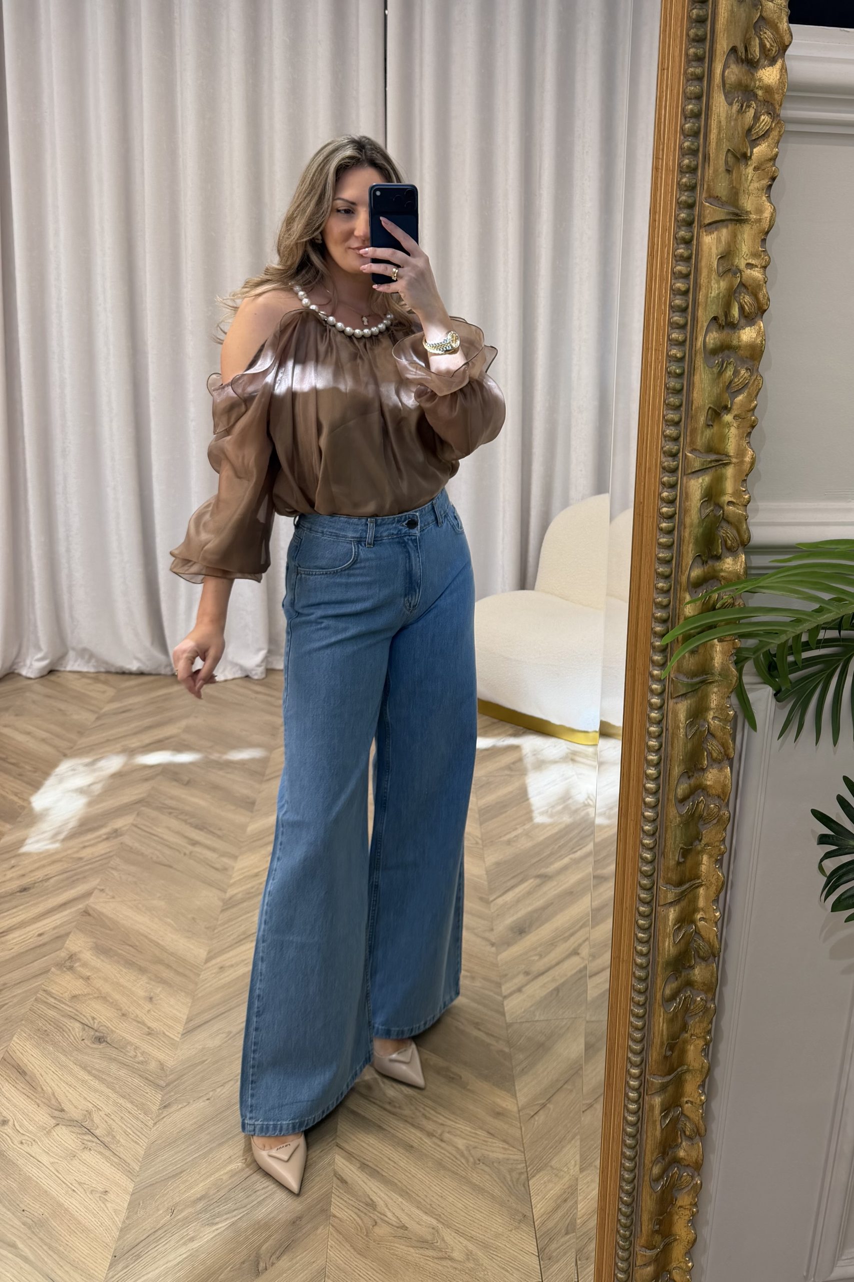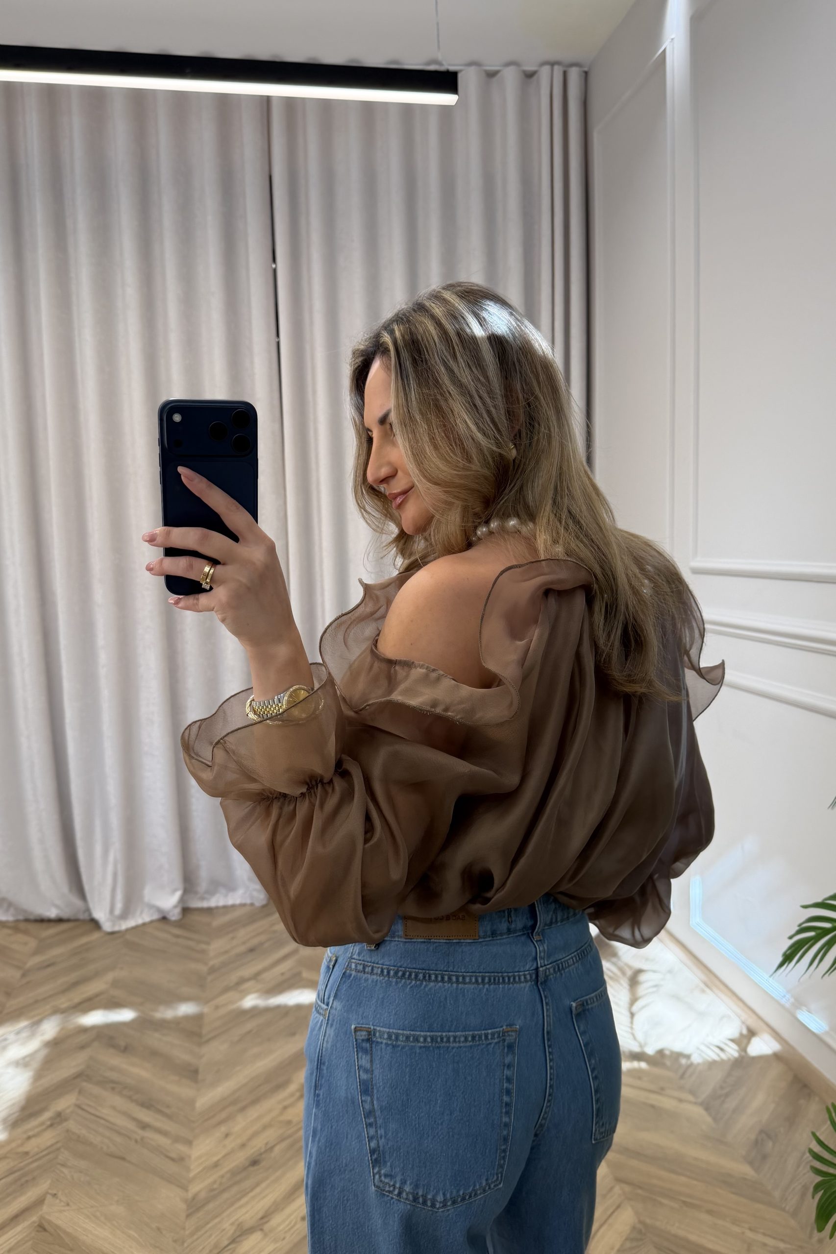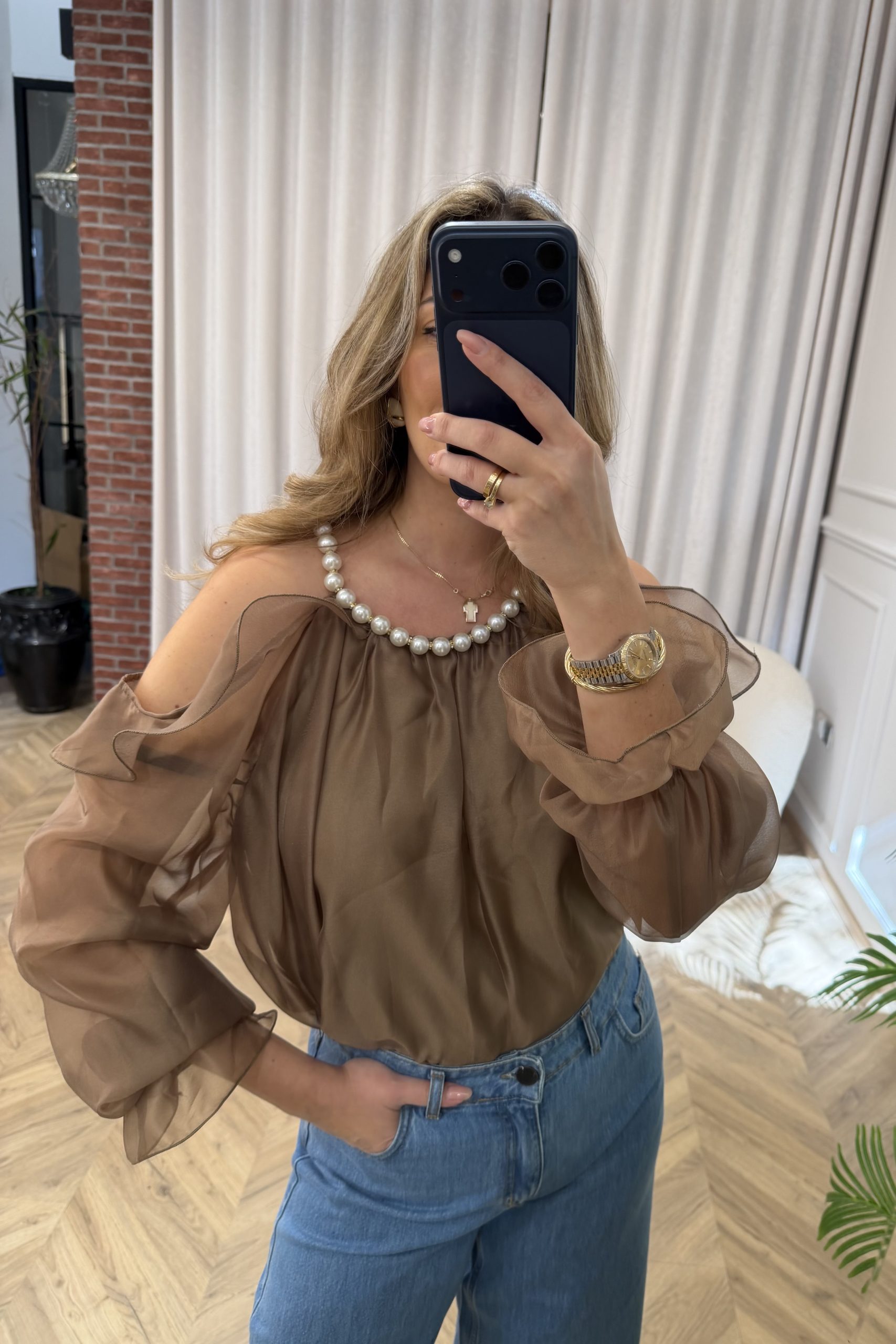 Αέρινο και ιδιαίτερα θηλυκό, αυτό το top ξεχωρίζει για την ανάλαφρη υφή του και τη ρομαντική αισθητική του. Η διακοσμητική λεπτομέρεια με τις πέρλες στο ντεκολτέ λειτουργεί σαν κόσμημα, προσθέτοντας διακριτική λάμψη και κομψότητα στο σύνολο. Η ρευστή γραμμή του αγκαλιάζει απαλά το σώμα, δημιουργώντας κίνηση και κομψότητα σε κάθε εμφάνιση. Ένα κομμάτι που μπορεί να φορεθεί από το πρωί μέχρι το βράδυ, συνδυάζοντας άνεση και διαχρονική φινέτσα.