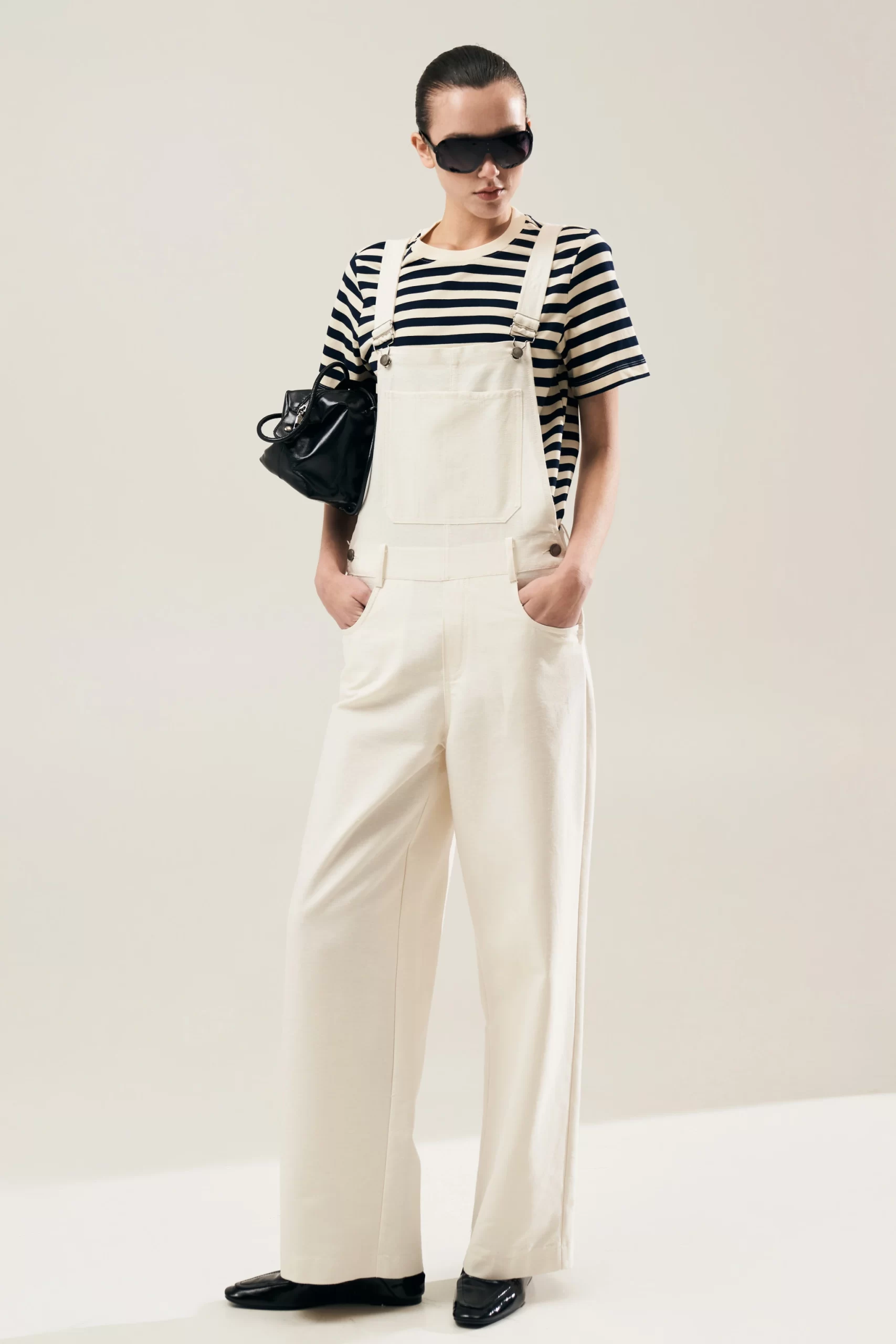 Σαλόπετα με σύγχρονη αισθητική και ανεπιτήδευτη κομψότητα, που επαναπροσδιορίζει το διαχρονικό utility κομμάτι μέσα από καθαρές γραμμές και άψογη εφαρμογή. Το structured επάνω μέρος με την κεντρική τσέπη δημιουργεί ισορροπία στη σιλουέτα, ενώ οι ρυθμιζόμενες τιράντες με μεταλλικά κουμπώματα προσθέτουν λειτουργικότητα και διακριτική λεπτομέρεια. Η ψηλόμεση γραμμή αγκαλιάζει το σώμα και καταλήγει σε φαρδιά, ίσια μπατζάκια που χαρίζουν κίνηση και σύγχρονο χαρακτήρα. Τα πλαϊνά κουμπιά και οι πρακτικές τσέπες ενισχύουν το tailored αποτέλεσμα, συνδυάζοντας άνεση και στιλ. Φοριέται από το πρωί έως το βράδυ, με T-shirt για relaxed layering ή με πιο fitted top για πιο δομημένο look. Ένα κομμάτι-κλειδί που προσαρμόζεται εύκολα σε κάθε περίσταση, διατηρώντας ισχυρή fashion ταυτότητα.