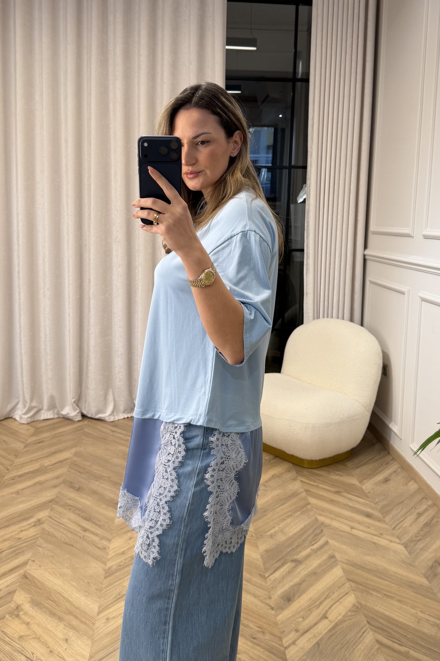 Susan Lace T-shirt – Sky Blue